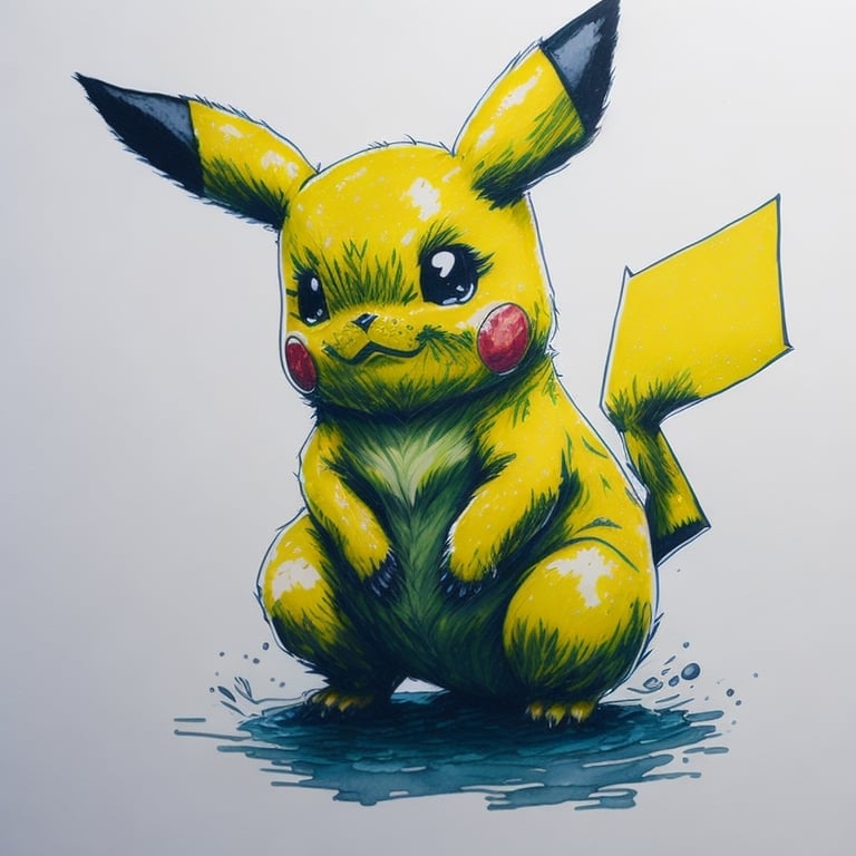 Pikachu drawing in water color texture Experience the electrifying energy of Pikachu in this stunning watercolor masterpiece. Featuring intricate details and a textured finish, this artwork captures the playful spirit of everyone's favorite Pokémon. The vivid colors and dynamic composition bring Pikachu to life, evoking a sense of joy and nostalgia. Perfect for fans of the franchise, this one-of-a-kind piece will add a spark of creativity and whimsy to any space. Don't miss your chance to own this charming and delightful artwork